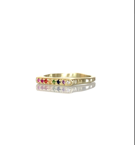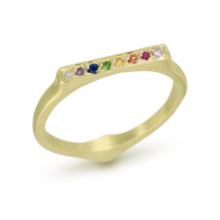 East-West Ring with Purple Sapphire and Ombre Orange Sapphires in 18K Fairmined Green Gold