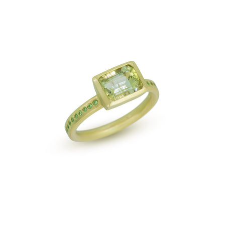 East-West Ring Green Beryl with Tsavorite Garnets in 14K Green Gold