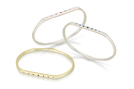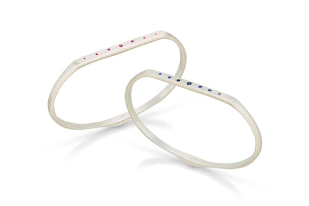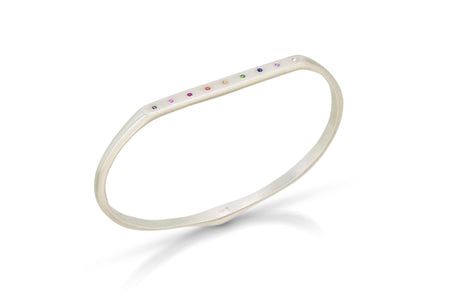 Corazon Bangle Bracelet with Rainbow Gemstones in Sterling Silver