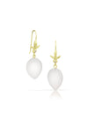 Petite Fleur Earrings with Frosted Quartz Lotus Drops and Diamonds in 14K Green Gold