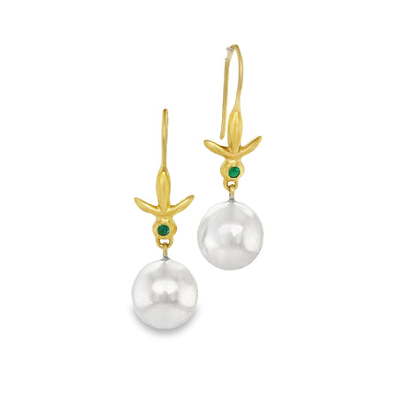 Petite Fleur Earrings with Akoya Pearls and Paraiba Tourmaline in 18K Green Gold