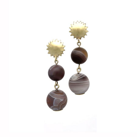 Sol Earrings with Botswana Agate in 14K Green Gold