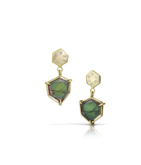 Kapoor Drop Earrings with Turquoise and Tourmaline in 18K Green Gold