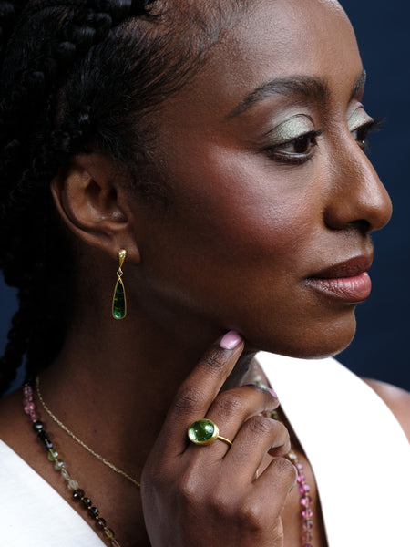 Green Tourmaline Oval Cabochon Ring in 18K Green Gold